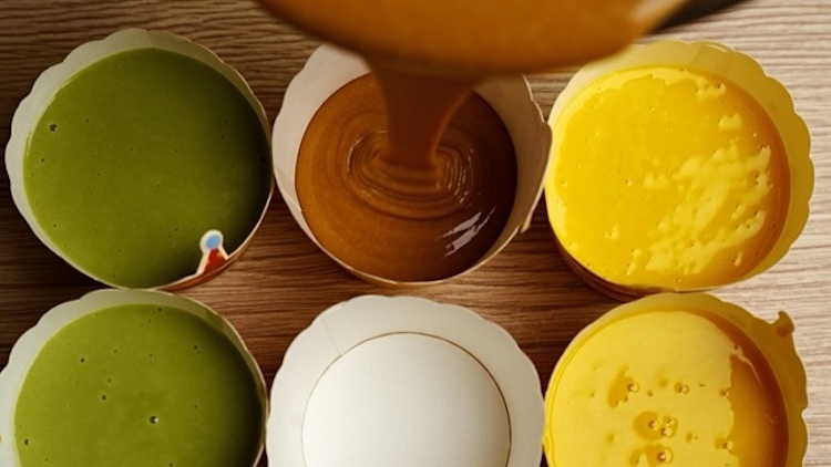 白糖發糕粉麵糊加入適量色粉or色膏調出黃色與綠色麵糊