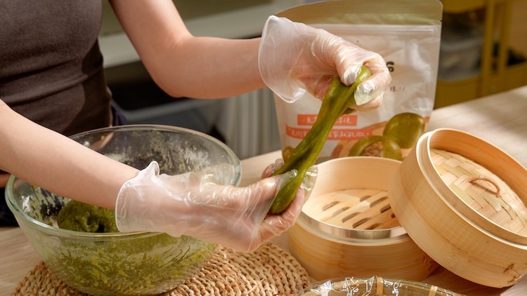 2.食材拌勻後,快速揉捏麵團至光滑