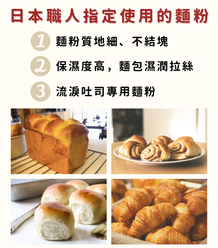 日本職人指定使用!質地細緻、不易結塊且保濕度高,麵團延展性佳,成品濕潤更拉絲。