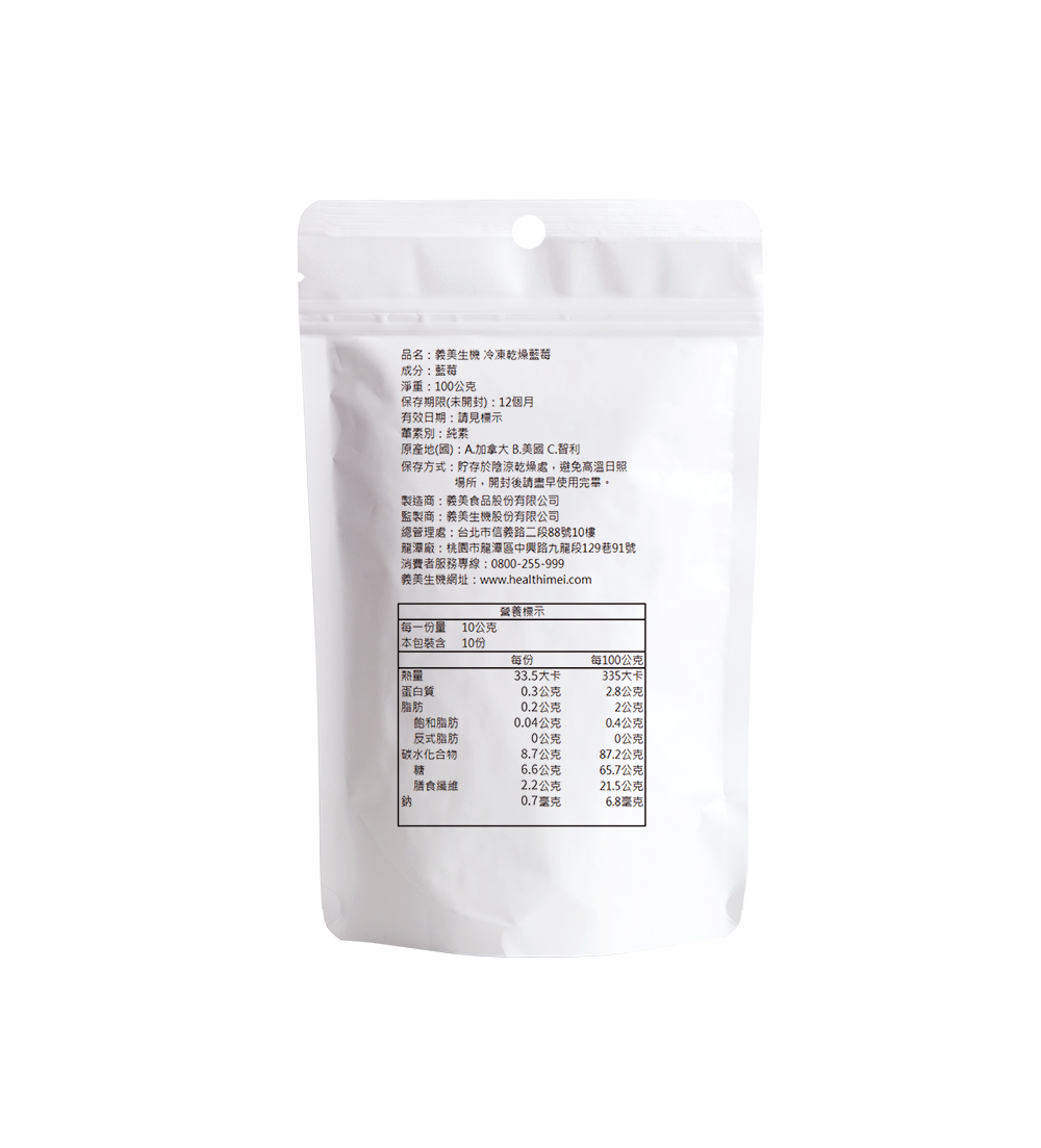 100% 無調味天然果乾!特選新鮮藍莓,果實飽滿優質。使用冷凍真空乾燥技術,保留營養及風味,並且不添加糖粉及添加物,天然風味,食用安心美味。知名台灣在地品牌「義美」,口碑極佳,食用更安心!