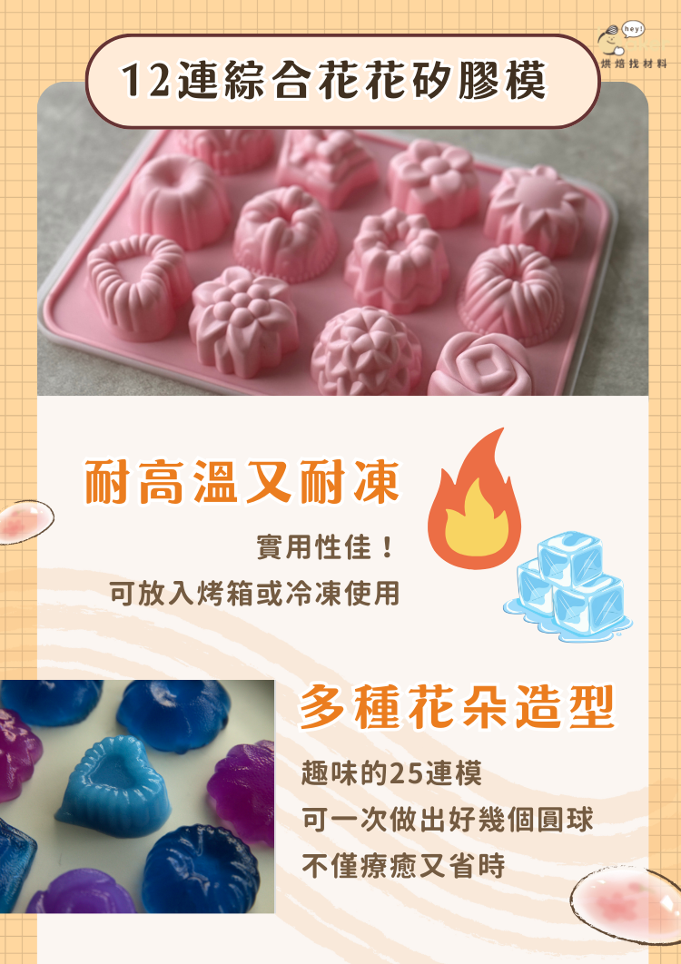 【烘焙用具】12連綜合花花矽膠模(附蓋)