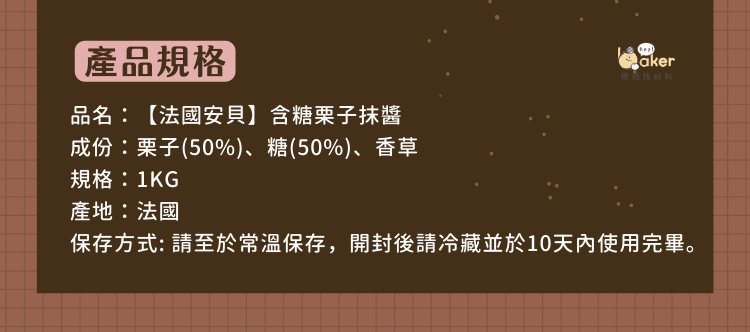【烘焙食材】法國安貝 含糖栗子抹醬