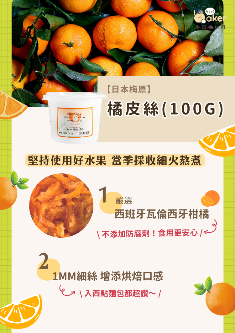 【烘焙食材】日本梅原 橘皮絲(100g分裝)