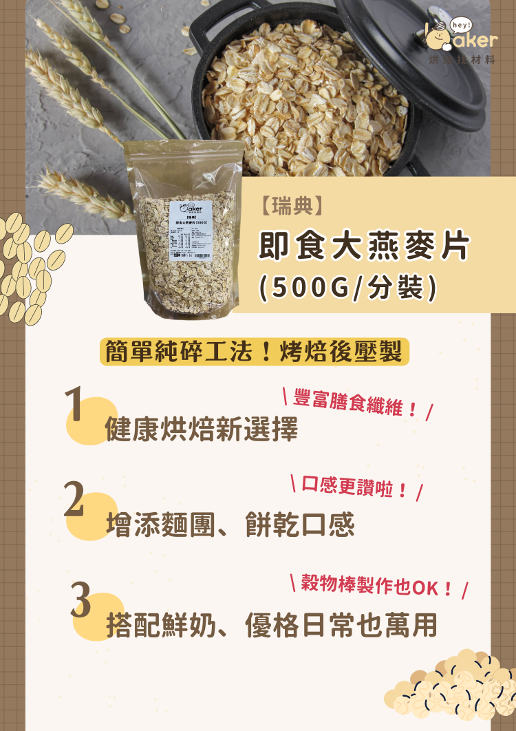 【烘焙食材】瑞典 即食大燕麥片(500g/分裝)