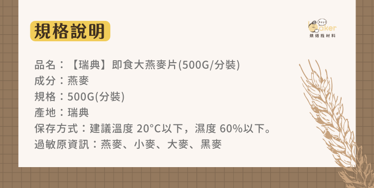過敏原資訊:燕麥、小麥、大麥、黑麥