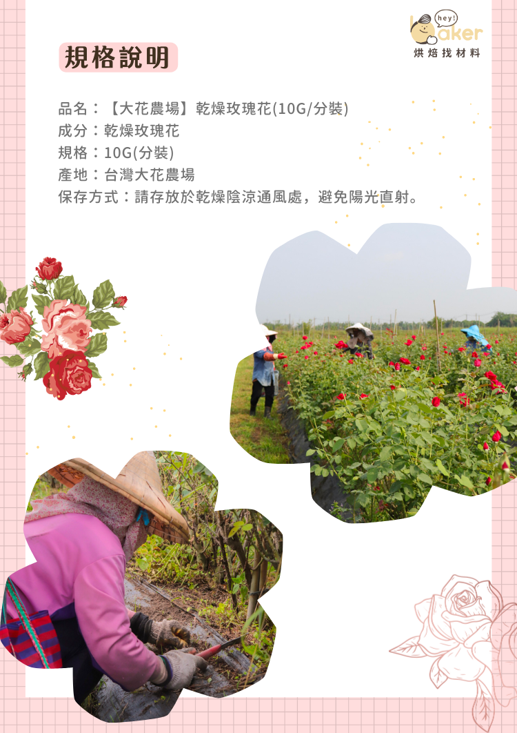 【烘焙食材】大花農場 乾燥玫瑰花(10g/分裝)