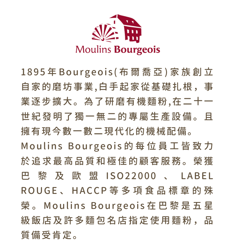 布爾喬亞石磨全麥麵粉T150,適合做歐法大型硬式全麥麵包,由於石臼研磨法出來的麵粉較無細緻感,但更有口感,帶有自然的小麥風味。