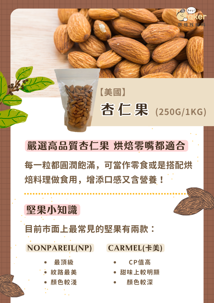 【烘焙食材】美國 杏仁粒(250g/1kg 分裝)