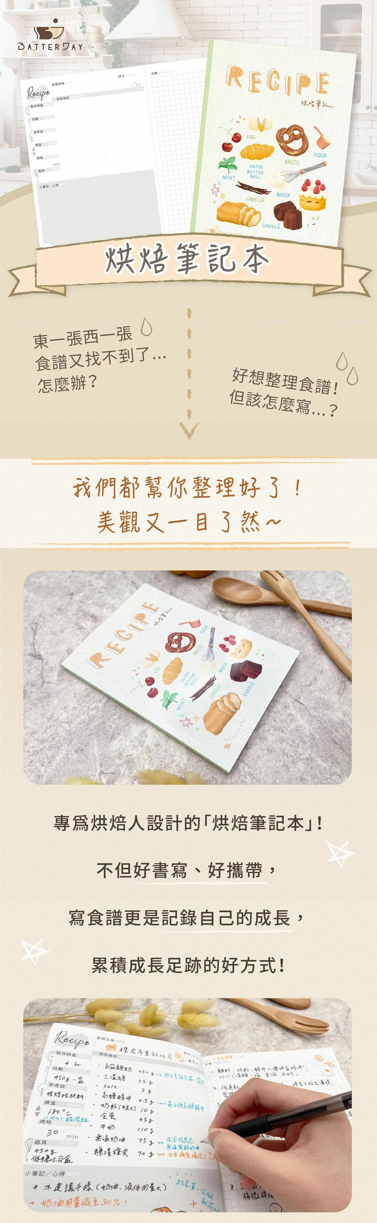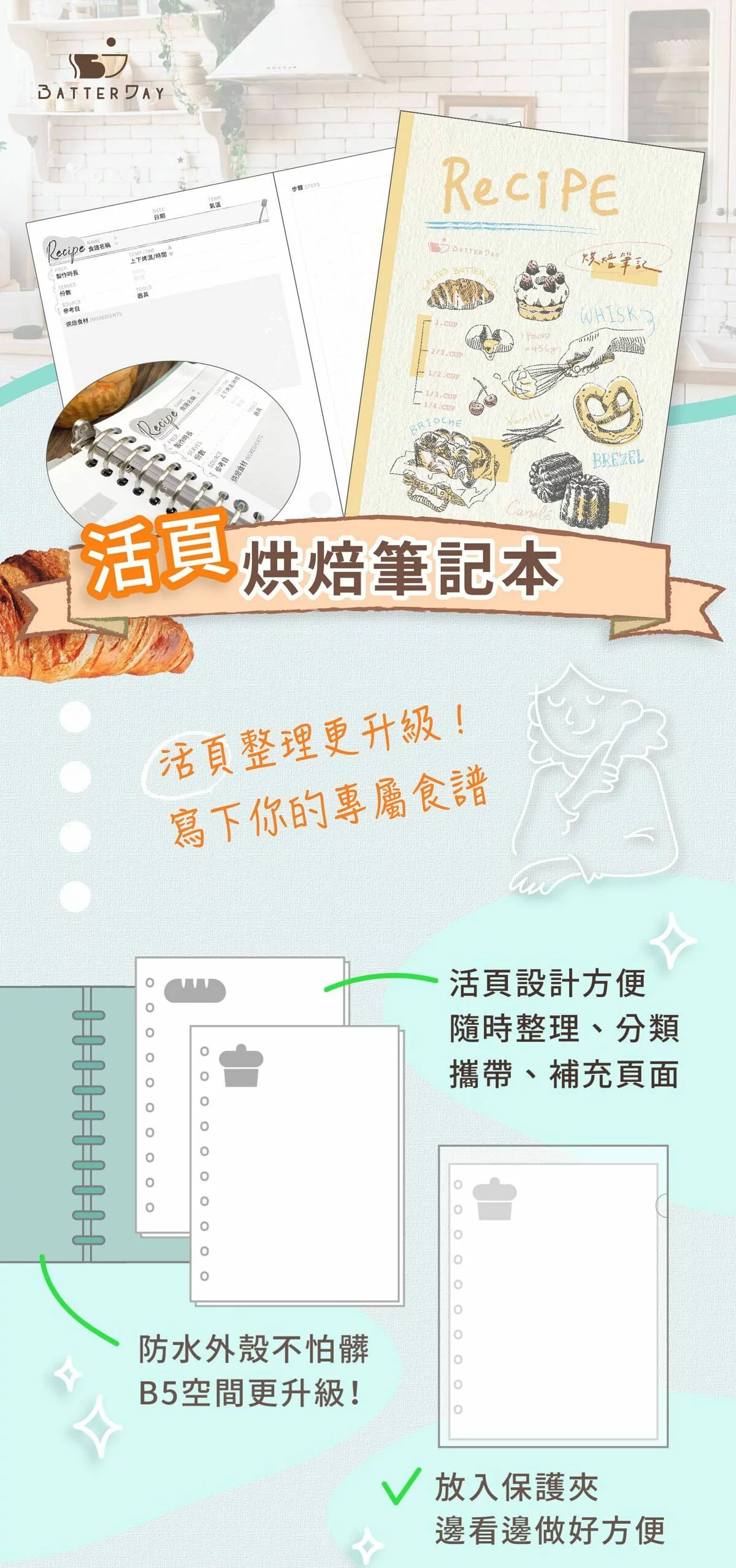 【BatterDay焙日】烘焙筆記本、活頁筆記本(60頁)、活頁筆記本內頁補充包(60頁):