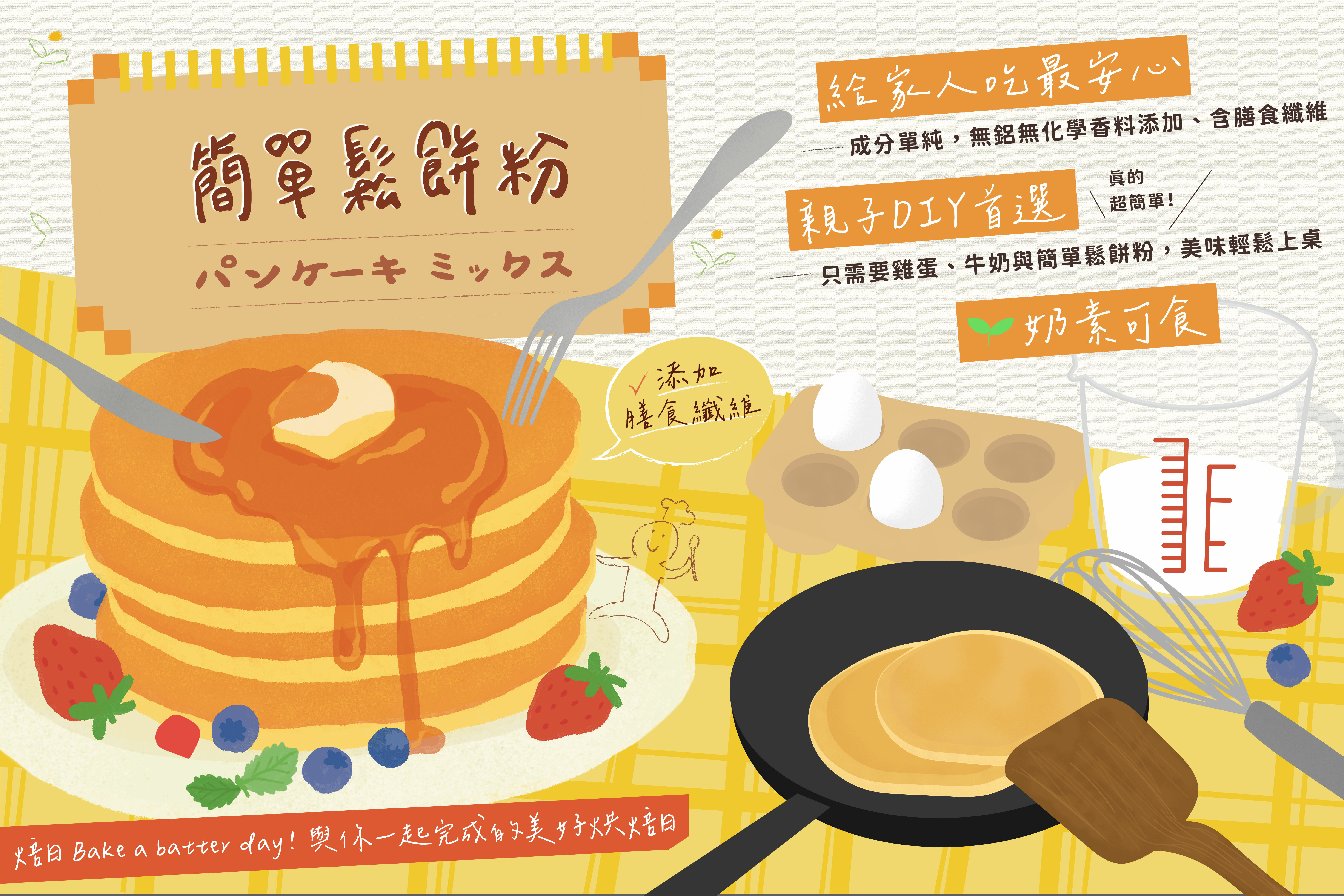 想來點快手早餐?想來點愜意下午茶?全都交給焙日簡單鬆餅粉幫你達成!
