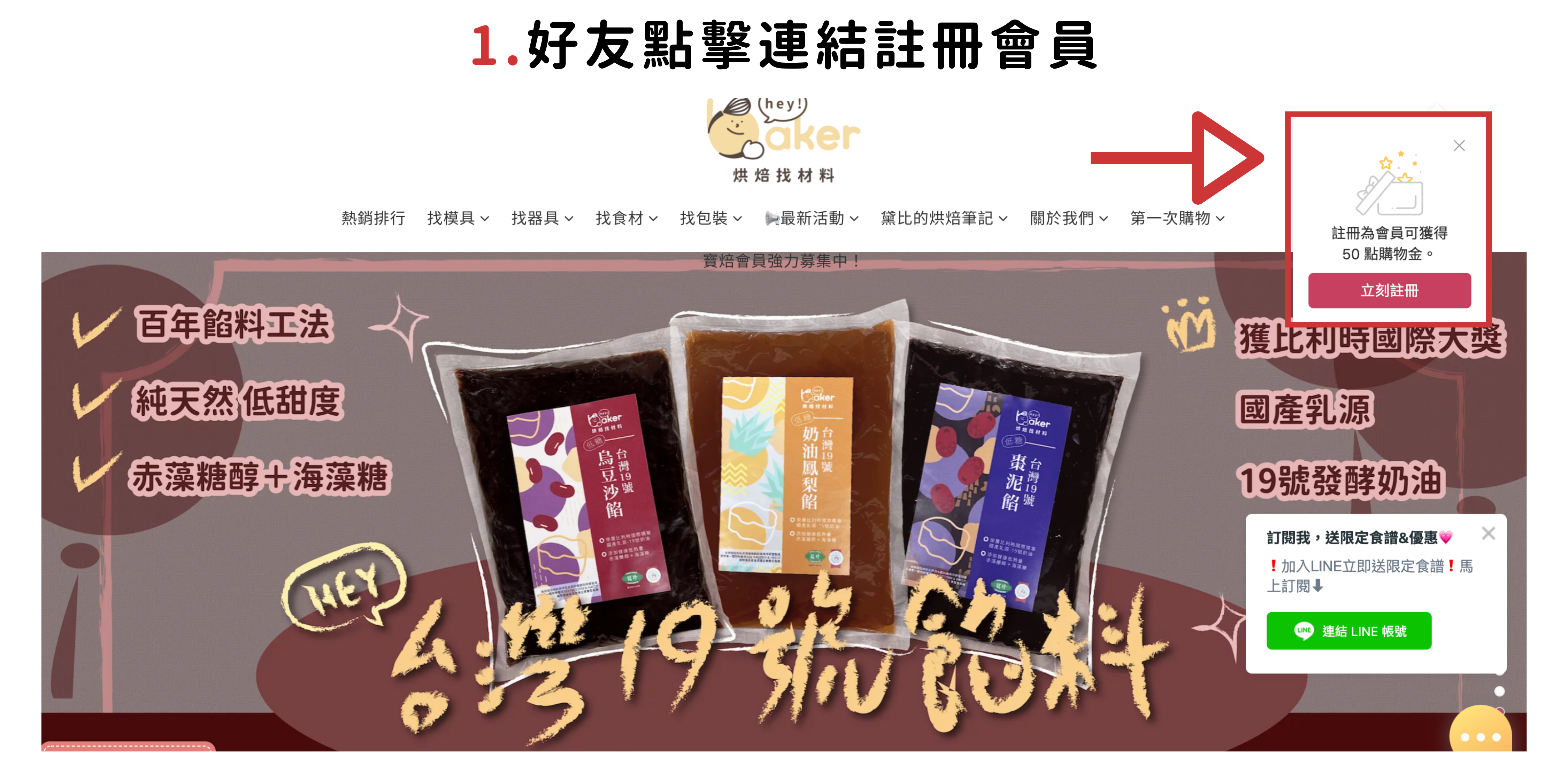 (1) 「被邀請人」僅限於從未註冊烘焙找材料會員的客人