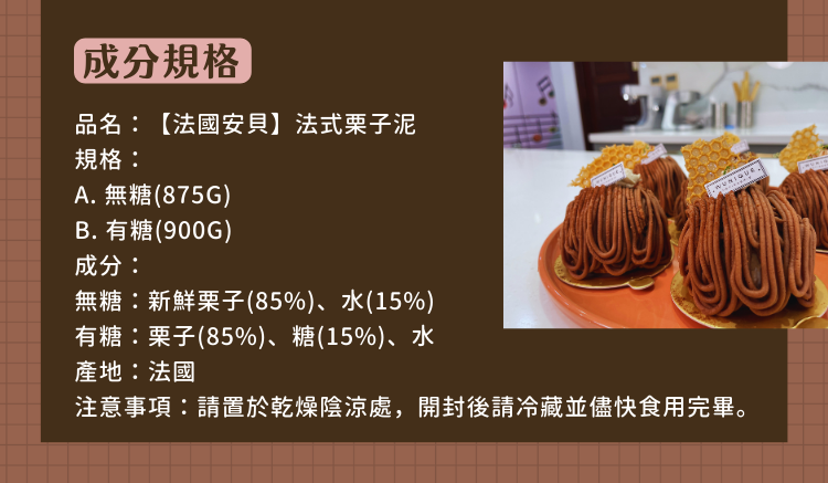 【法國安貝】法式栗子泥(無糖/有糖)