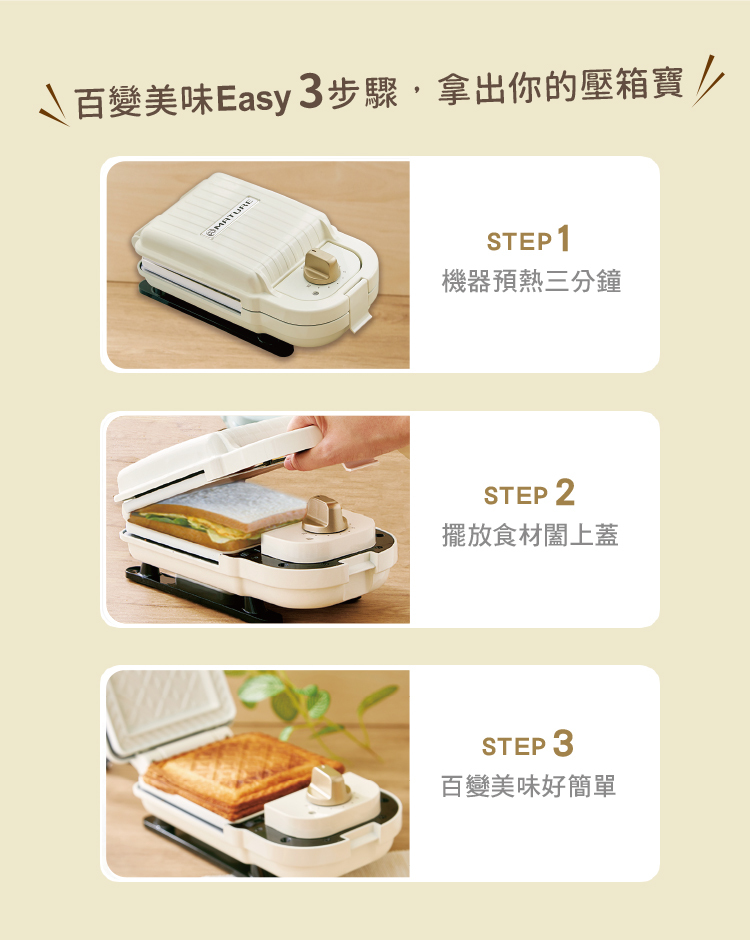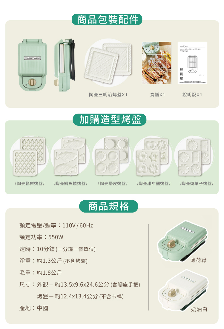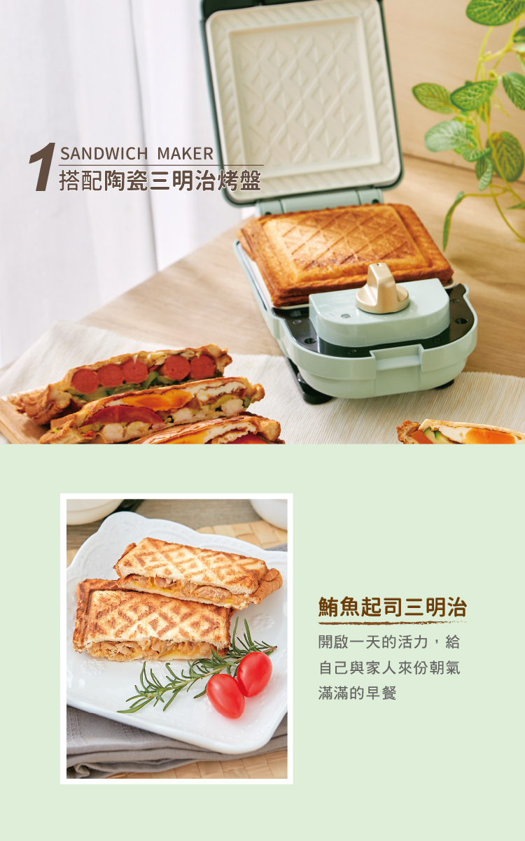 1. 單買主機(隨附1組三明治烤盤):薄荷綠(型號:CY-1625) / 奶油白(型號:CY-1622) 團購價$1,680(原價$2,980)