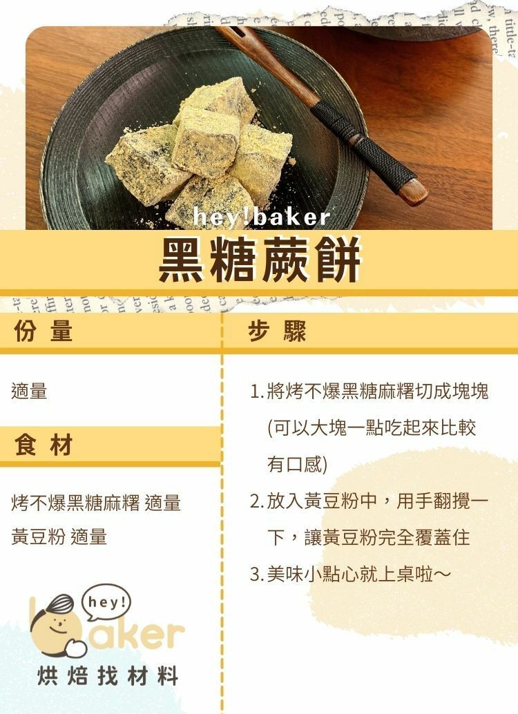 把濃郁的黑糖加入烤不爆麻糬中一起蒸煉,讓麻糬增加黑糖的風味,適合在各類烘焙產品如麵包蛋糕和月餅。