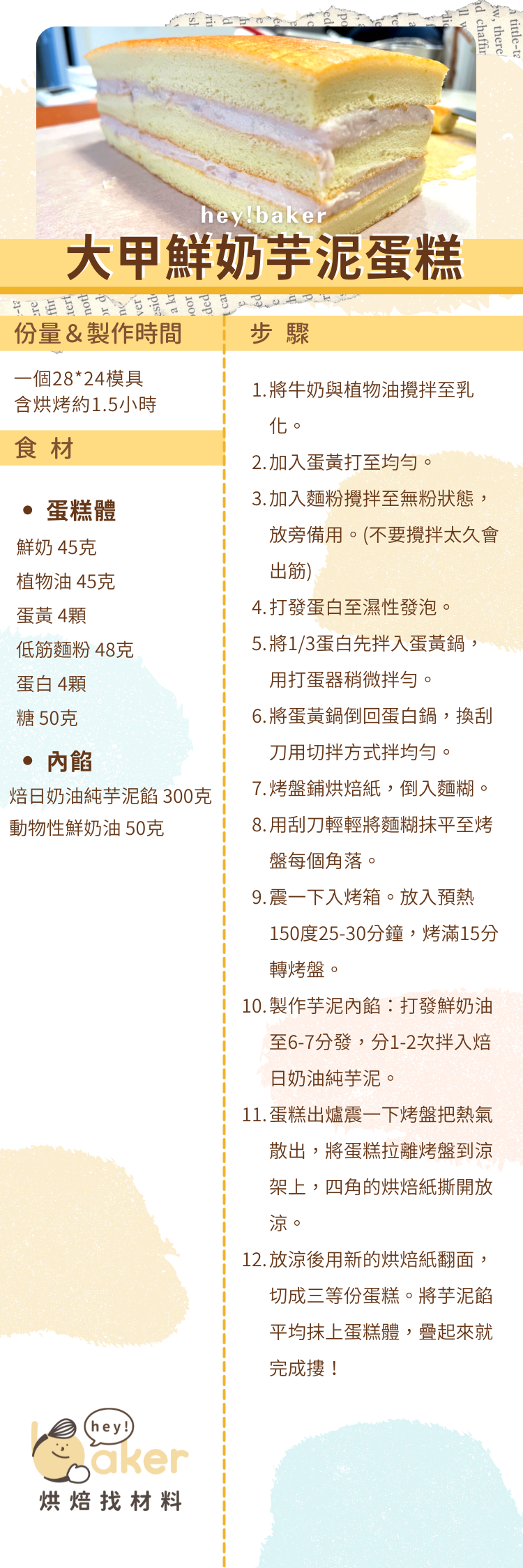 使用來自大甲的芋頭,獨家配方不膩口,加入國產草飼乳源---19號發酵奶油生乳風味,適合當蛋糕夾層內餡、芋泥蛋糕捲、芋泥吐司,等各種甜點麵包的內餡。