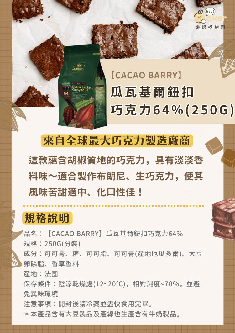 這款巧克力以其細緻微苦的風味聞名,並採用公平交易的可可製成。其獨特的口感蘊含著胡椒的質地,帶有香料的風味。不僅適合製作布朗尼和生巧克力,而且其苦甜適中,口感化口度佳,並且不帶任何酸味,絕對是品味享受的最佳選擇。