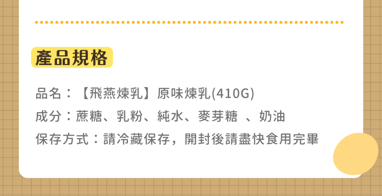 產品名稱:飛燕煉乳 原味煉乳(410g)