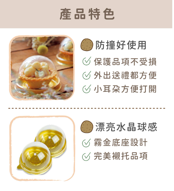 單顆蛋黃酥泡殼容器~不再擔心你的蛋黃酥碰撞毀容,送禮帶出都好方便!點綴祝福,用美美的包裝盛裝心意!泡殼有耳設計更好打開,霧金色底座完美襯托品項,讓收到的人有滿滿的中秋幸福~