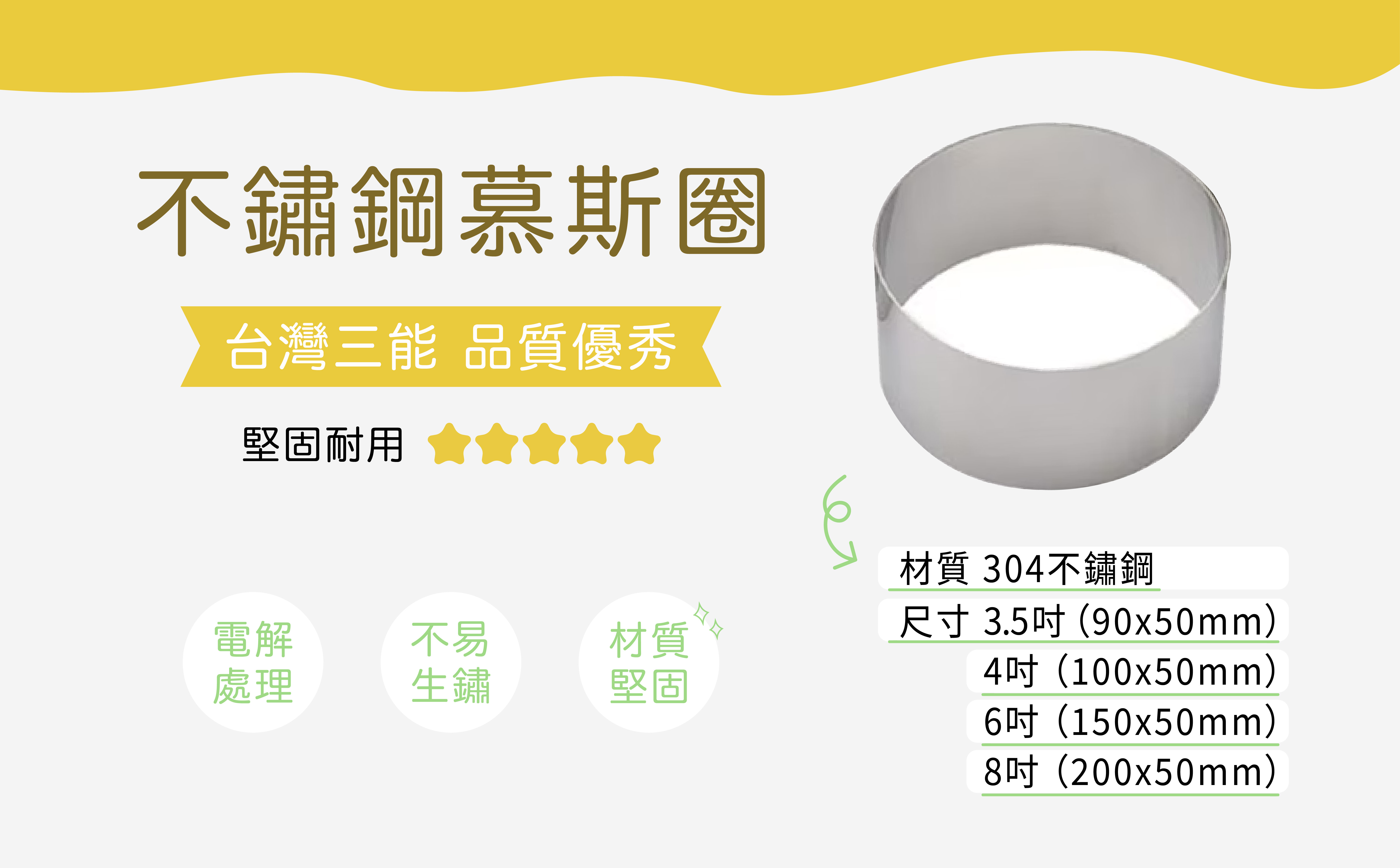 【台灣三能】304不鏽鋼慕斯圈