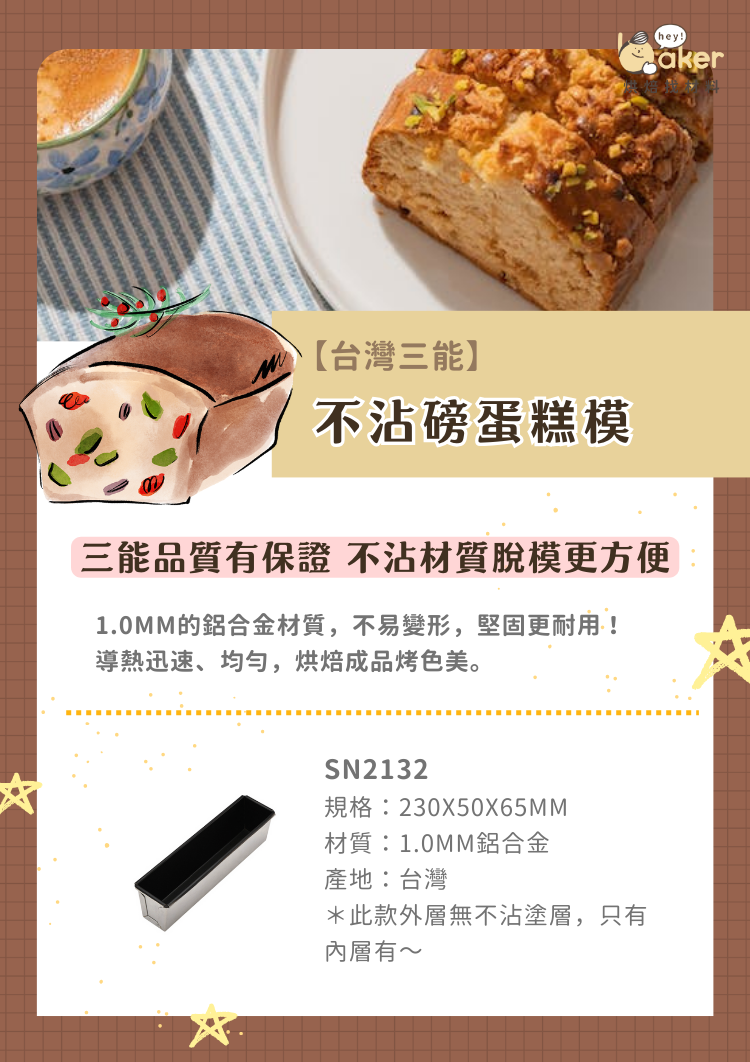 1.0mm的鋁合金材質不沾磅蛋糕模,不易變形,堅固更耐用!導熱迅速、均勻,烘焙成品烤色美。